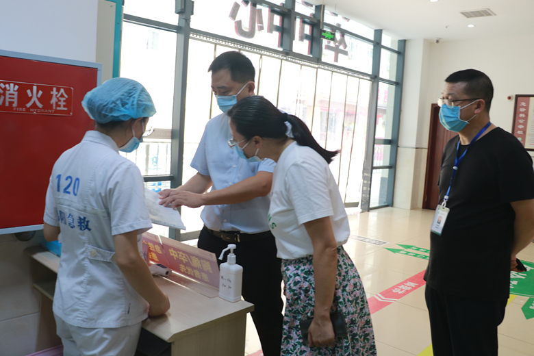7月16日上午,党委书记应军、副院长邓光明带队先后对医院预检分诊、发热门诊、门急诊等重点区域进行全面督查,详细掌握医院各重点部门落实新冠疫情防控工作的情况。