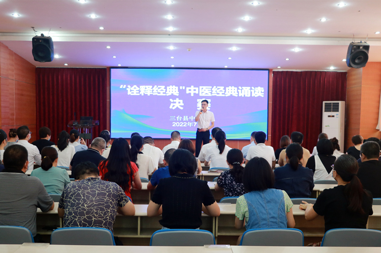 诵读中医经典,传播中医文化。7月27日,在第五个“中国医师节”即将到来之际,三台县中医院在行政楼四楼举行了“诠释经典”中医经典诵读大赛。院领导班子、全体中层干部及临床科室医生代表参加活动。