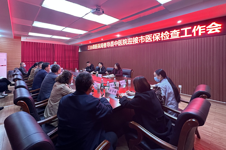 11月10日下午,三台县医疗保障局局长赵亮带队到三台县中医院调研指导医院医保工作。党委书记应军、院长卢文华,医保、医务、护理等相关科室负责人参加会议。