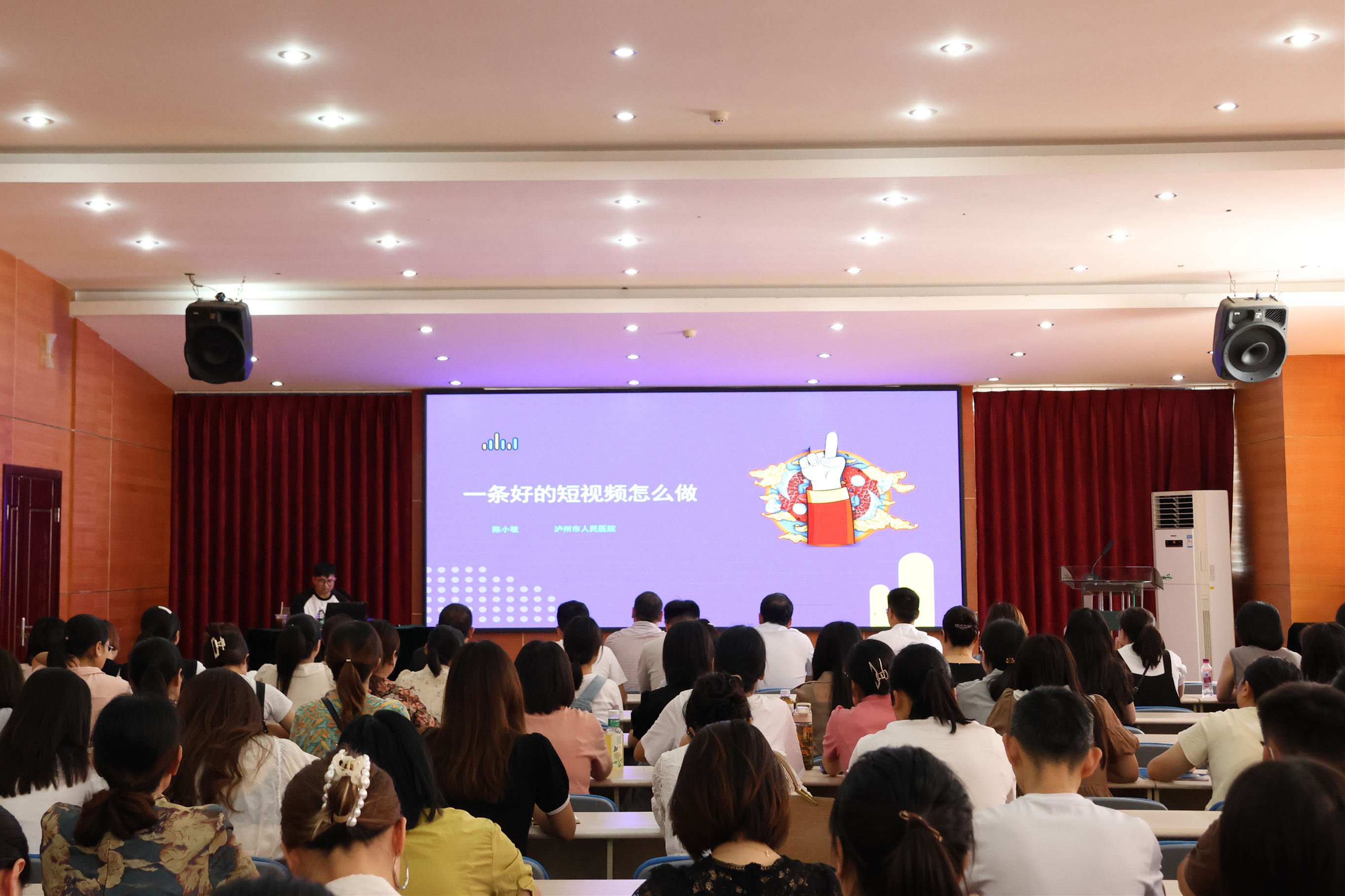 为了加强医院宣传队伍建设,提高各科室宣传员的新闻素养和创作能力,医院邀请到泸州市人民医院宣传统战部陈小敏老师,对医院科室通讯员以及爱好新媒体创作的职工近200人,开展了一次医院短视频制作专题培训。党委书记应军出席会议。会议由纪委书记徐少华主持。
