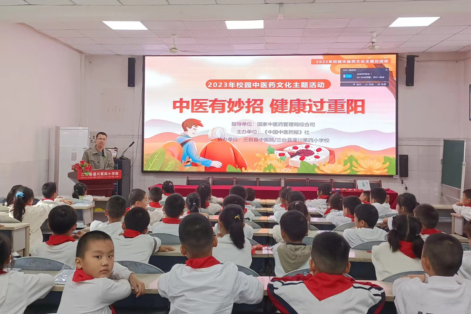 为加强中医药文化传播,增强小学生的传统文化自信,10月23日,在重阳节到来之际,三台县中医院走进潼川四小,开展了以“中医有妙招 健康过重阳”的主题中医药文化进校园活动。
