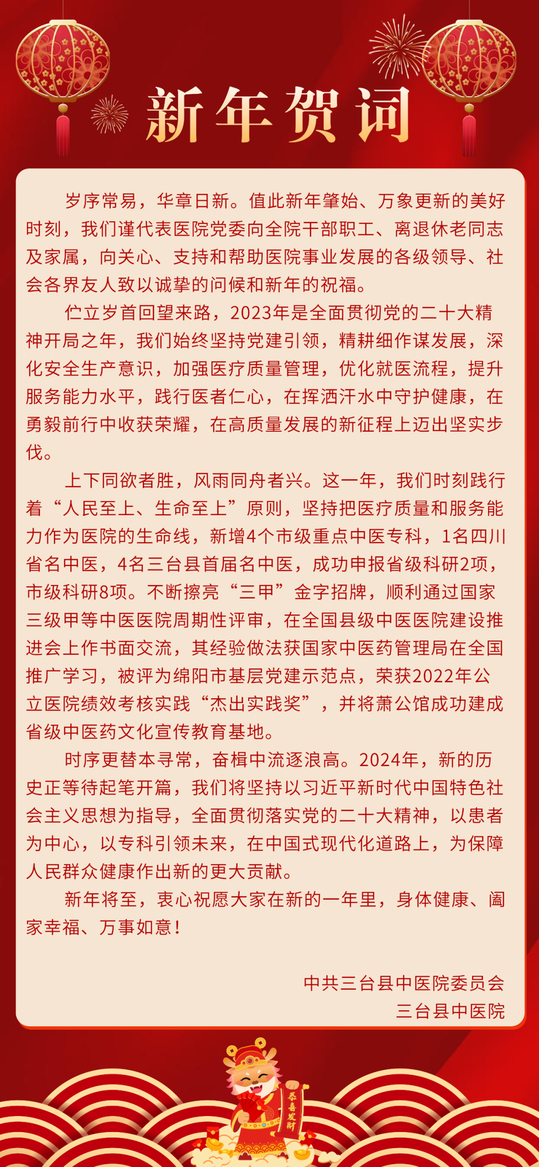 三台县中医院2024年新年贺词