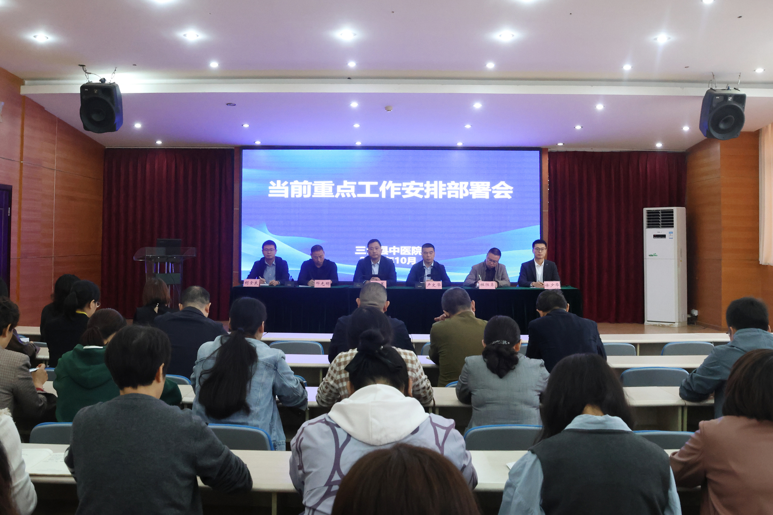 10月8日,国庆节假期结束后上班的第一天,三台县中医院召开当前重点工作安排部署会,院领导班子、全体职能科室人员参加会议。