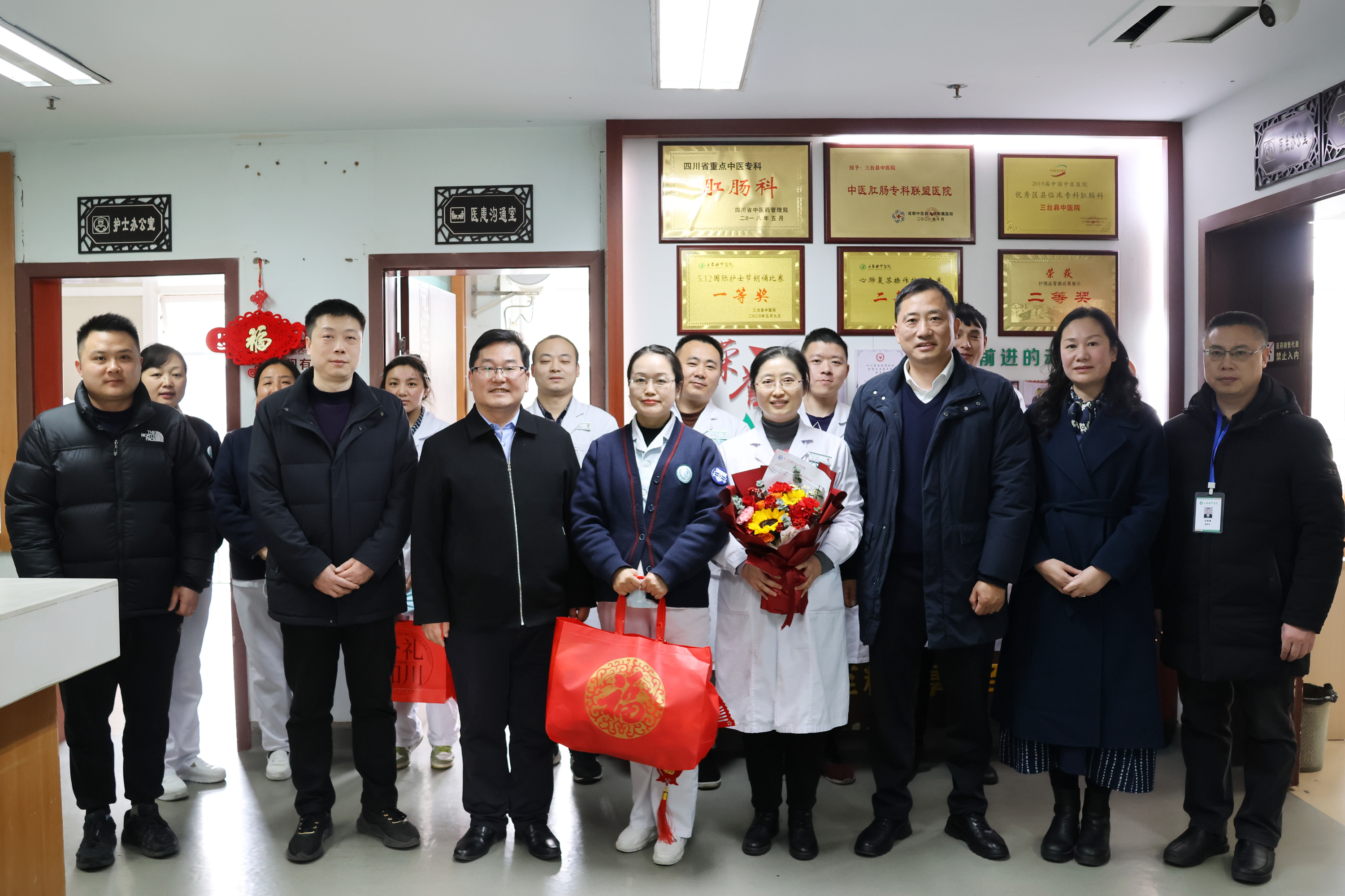 1月13日,四川中医药高等专科学校党委委员、副校长梁晓峰一行4人莅临我院,进行春节前走访慰问。党委书记应军、院长卢文华、副院长杜胜勇及相关科室人员陪同。