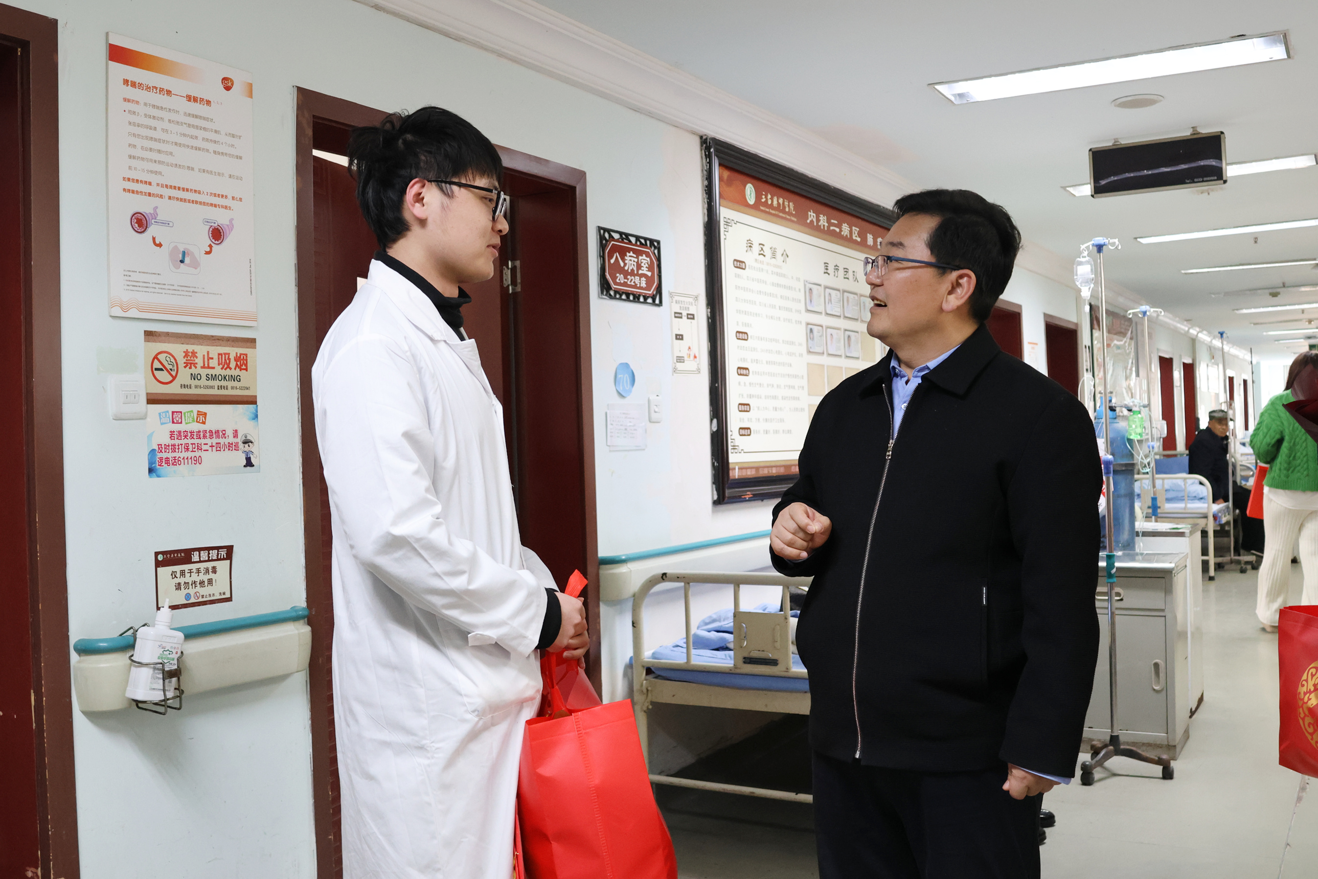 走访慰问期间,慰问组一行深入医院一线科室,与医护人员亲切交流,高度赞扬了医护人员对实习生们的悉心培养和耐心教导,并对全体医务人员致以诚挚的新春问候和美好祝愿。同时,慰问组一行还与科室实习生面对面交流,详细了解了学生们的实习、生活情况,鼓励他们继续努力,不断提升自己的专业技能。