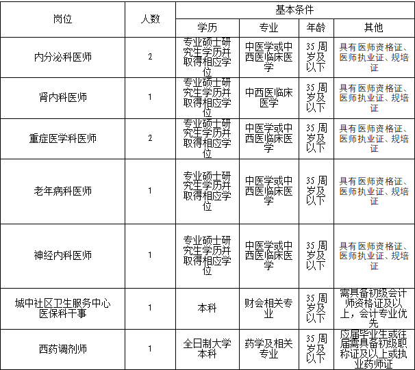 因医院科室业务发展需要,现急需招聘以下岗位工作人员。