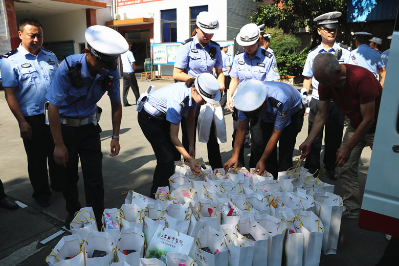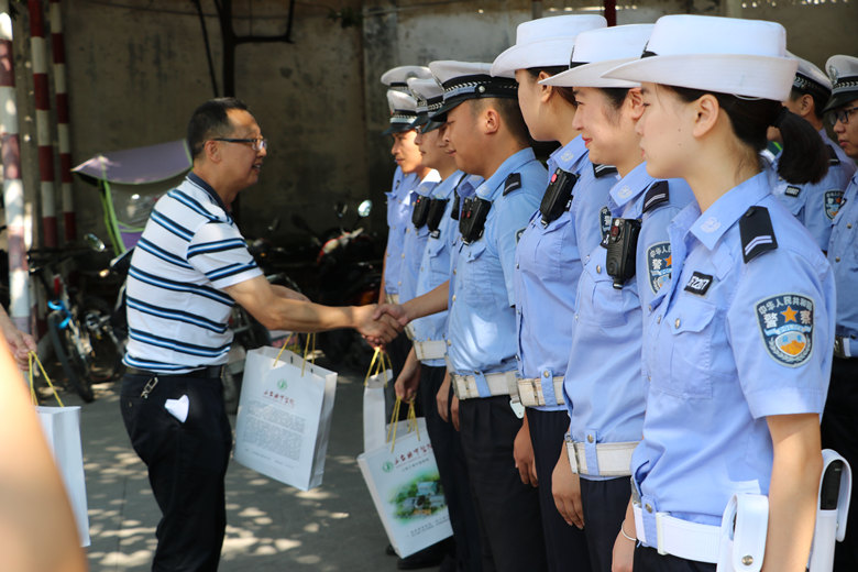 7月10日上午,三台县中医院党委书记谭建军一行4人来到三台县公安局交警大队为坚守在一线的交警们,送上了防暑降温药品及用品。