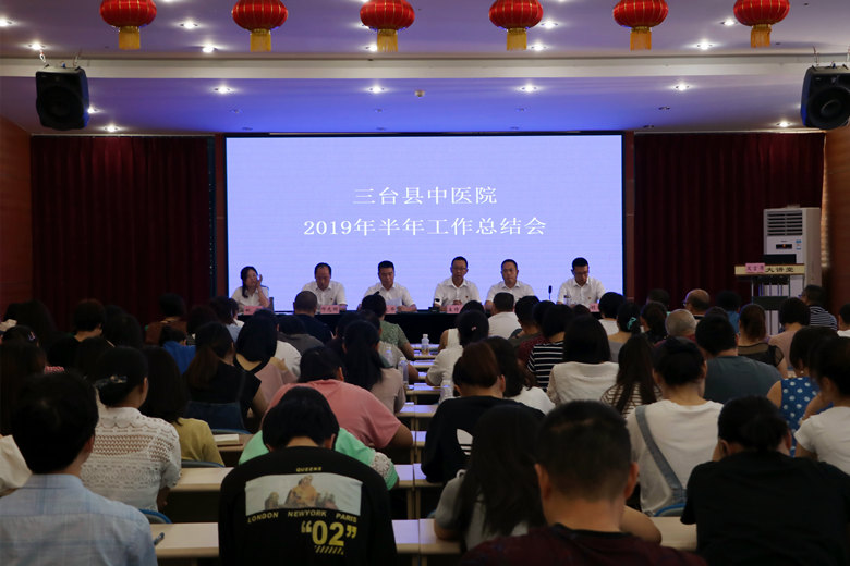 7月10日,三台县中医院召开2019年半年工作总结大会,院班子成员、中层干部、各科室代表及职能科室全体成员近200人参加会议。会议由党委书记谭建军主持。