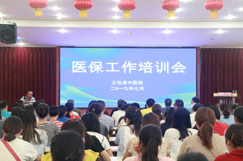 为进一步规范我院的诊疗行为,确保医保基金高效、安全,7月19日,我院邀请县医保局长赵亮在行政楼四楼多功能厅组织召开医保工作培训会,会议由县中医院党委书记谭建军主持。院领导班子、全体中层干部、医生及护士代表、职能科室全体人员共计200余人参加了会议。