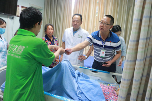 对该患者,我院严格执行健康扶贫“先诊疗后付费”政策,然而,手术后的吴某身体非常虚弱,科室的医生护士们看到这一幕,默默地在科室自发组织了一场募捐活动,用实际行动支持她与病魔作斗争。短短一上午,已募集爱心捐款1400元用于帮助吴某补充营养,尽早恢复健康,并于第一时间交到了患者家属的手中。