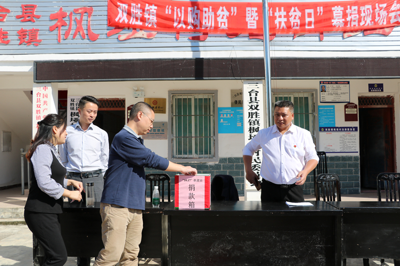 10月16日,三台县中医院党委书记谭建军带领帮扶责任人一行32人,前往双胜镇枫垭村开展扶贫日“以购代扶”活动。