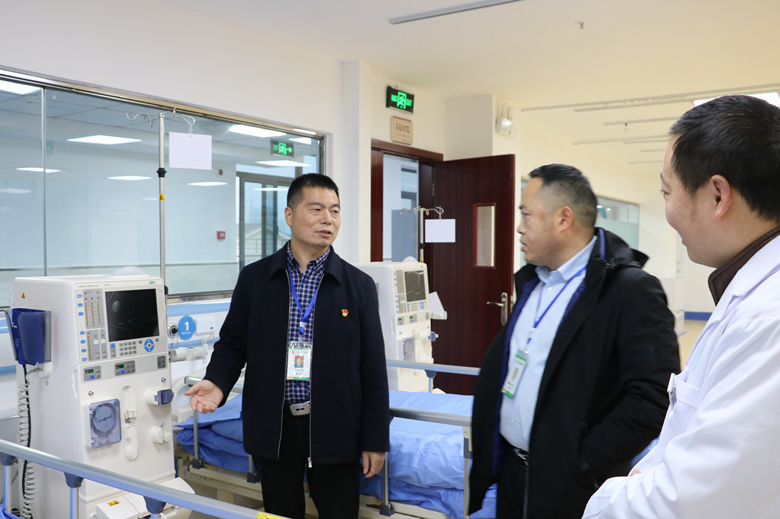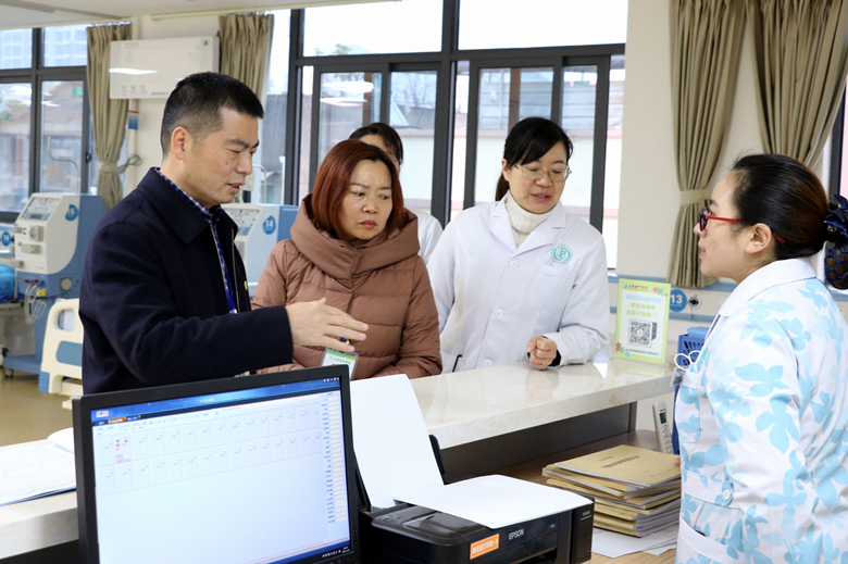 1月2日上午,院长卢文华带领院班子成员及相关职能科室负责人到血液透析室进行质控督导检查。