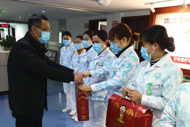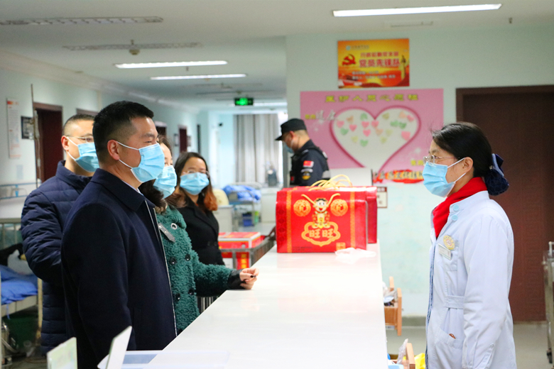 1月24日,党委书记谭建军、院长卢文华带领院班子成员深入一线,为坚守在工作岗位的医务人员送去了新春的慰问和祝福。
