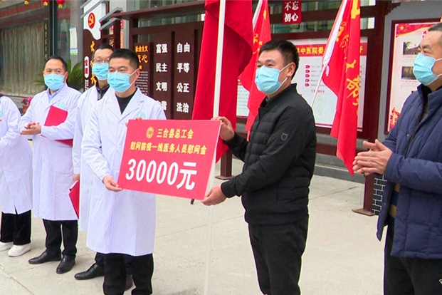 1月30日,县委常委、总工会主席敬勇一行来到三台县中医院,向春节期间奋战在防疫第一线的医务人员表达崇高的敬意和新春的问候,并送去慰问金3万元。