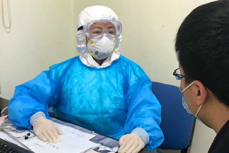 图为向林平接诊发热病人