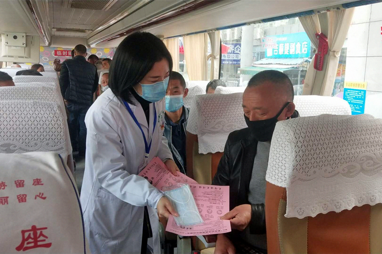 2月26日,三台县“春风行动”第二批农民工返岗运输再次起航。为确保防控工作落实到位,农民工兄弟健康出行,三台县潼川镇社区卫生服务中心选派医务人员到车站为所有返岗人员进行体温测量、发放新冠肺炎防控知识宣传单、讲解七步洗手法,并为所有佩戴布口罩的驾乘人员免费发放医用外科口罩。