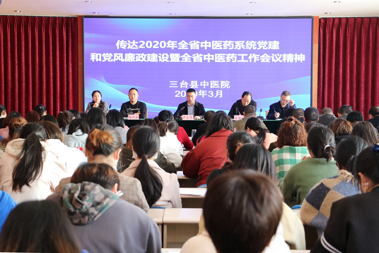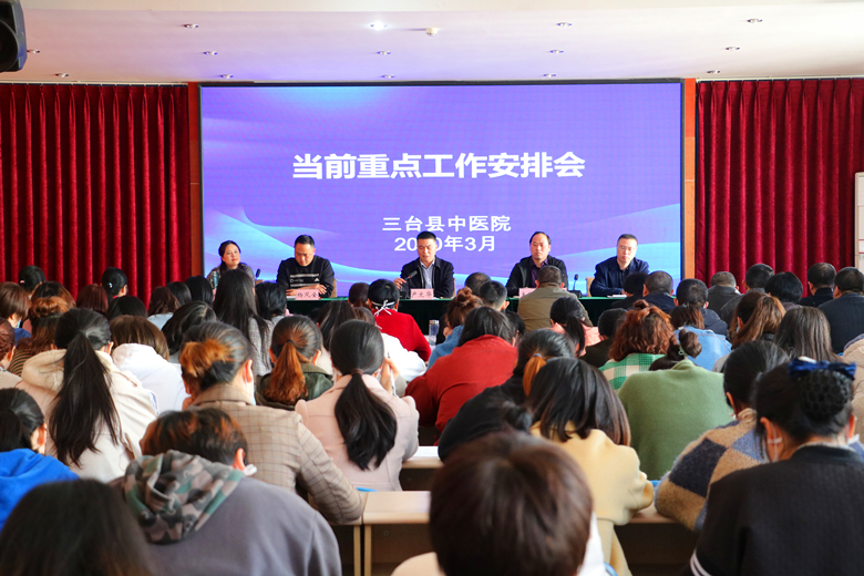 3月31日,三台县中医院召开会议,迅速学习传达全省中医药工作会议精神,并就当前重点工作进行安排部署。院班子成员、中层干部、各科室代表及职能科室全体人员参加会议。会议由副院长邓光明主持。