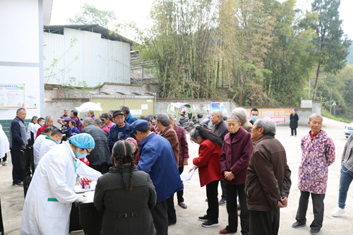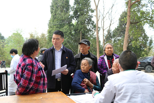 4月8日,三台县中医院院长卢文华一行前往潼川镇禾加办事处光明村督导基本公共卫生健康体检工作。