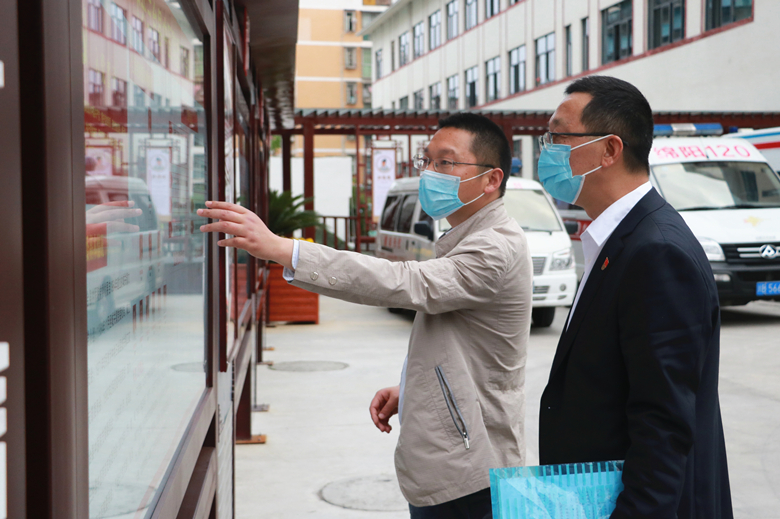 调研组一行实地调研了医院的党建文化长廊和党员活动室,详细了解党建阵地建设情况。