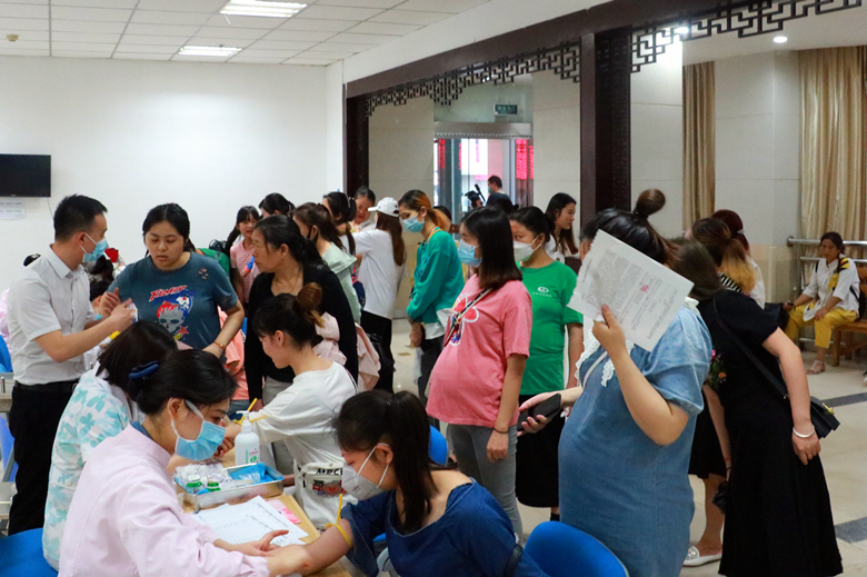 活动现场,医务人员为前来咨询的群众进行耐心细致地解答,并向群众普及地贫防控救治知识。许多群众通过网络预约和现场登记,并等待进行免费地贫检测。