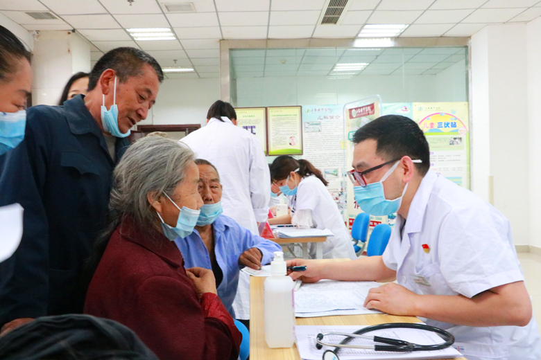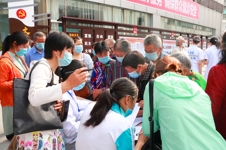 在三台县中医院慢性病鉴定工作现场,前来认定的贫困群众有序排队,接受审核。三台县中医院专家组为贫困群众认真登记、量血压、测心率、查看住院病历,现场秩序井然......