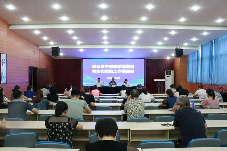 6月20日上午,三台县中医院召开新冠肺炎常态化防控工作推进会,对下一步防控工作进行再安排、再部署。院领导班子及全体中层干部参加了会议。