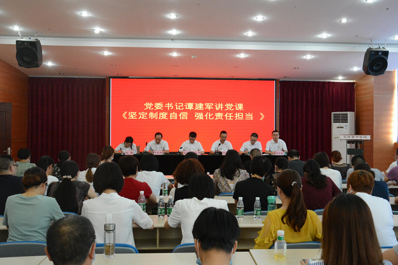 党委书记谭建军以《坚定制度自信、强化责任担当》为题,为广大党员们上了一堂生动的党课。谭书记分析了疫情防控彰显的中国共产党领导和中国特色社会主义制度优势,要求党员干部要进一步坚定制度自信,在后疫情时代,要以更加强烈的机遇意识、更宽广的视野、更科学的制度机制,主动在中医药事业发展大局中善作为、强担当、作贡献。