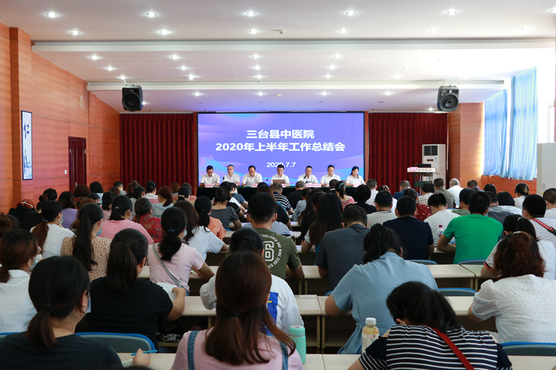 7月7日下午,三台县中医院召开2020年上半年工作总结大会。院领导班子、全体中层干部、临床医护人员及职能科室人员200余人参加会议。会议由党委书记谭建军主持。