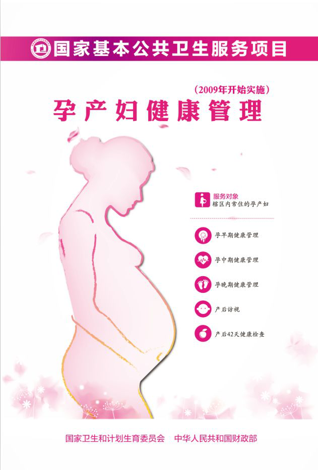 对辖内常住孕产妇开展孕早期、孕中期、孕晚期健康管理和产后访视。孕13周前为孕妇建立《母子健康手册》,并进行第1次产前检查;孕中期(孕16~20周、孕21~24周各一次)健康教育和指导;孕晚期(孕28~36周、孕37~40周各一次)健康教育和指导;产妇出院后1周内在家中享受1次产后访视;产后42天产妇到医院进行产后健康检查。