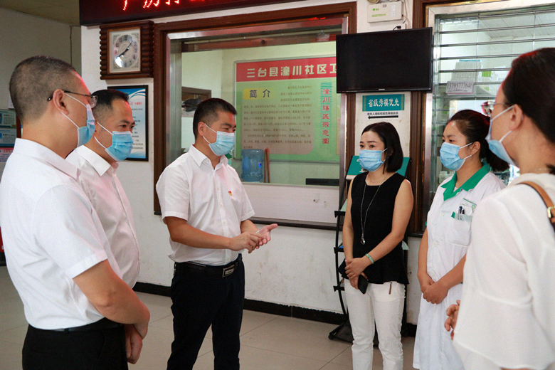 8月26日,三台县中医院院长卢文华带领副院长杨凤全、纪委书记杜胜勇及相关部门负责人,赴潼川社区卫生服务中心,就新冠肺炎疫情常态化防控工作进行再次督导检查。