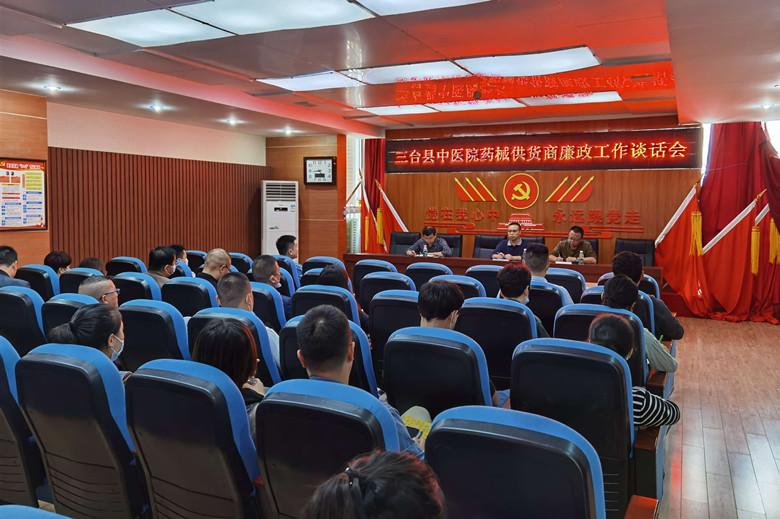 为进一步加强医院党风廉政和行业作风建设,从源头上遏制医药购销领域不正之风,营造风清气正的药械购销环境, 9月24日上午,三台县中医院组织与医院有业务往来的药品、器械、耗材供应商(经销商)召开廉政工作谈话会,纪委书记杜胜勇及相关科室负责人参加会议。会议由药剂科主任安学锋主持。