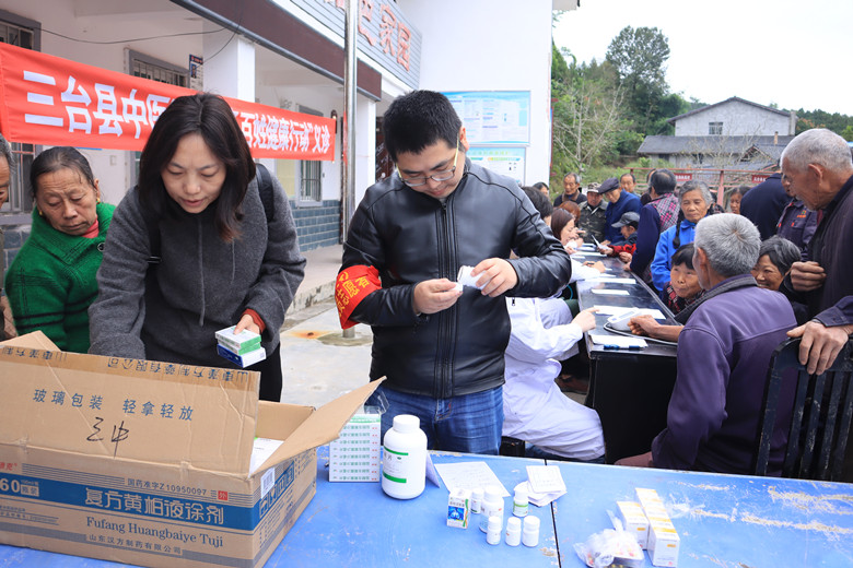10月14日,三台县中医院组织医护人员及贫困帮扶干部20余人,前往双胜乡枫垭村,开展义诊、走访入户等系列健康扶贫活动。