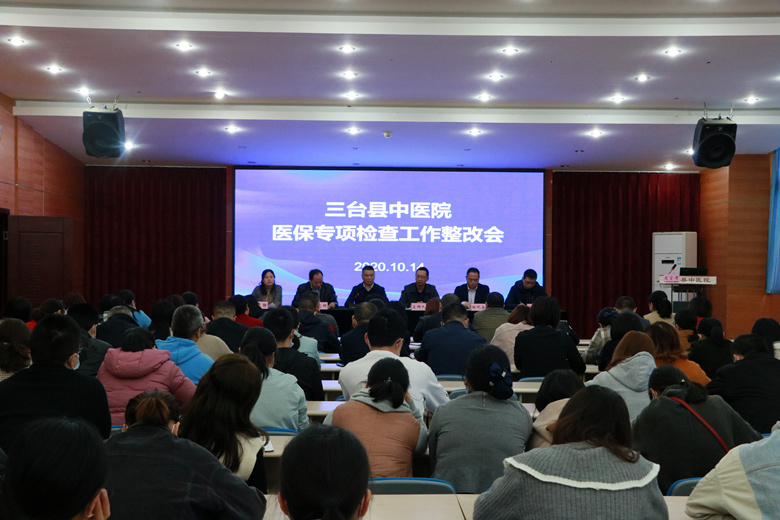 10月14日,三台县中医院召开医保专项检查工作整改会,院班子成员、中层干部、全院医生、总办护士、质控护士及职能科室相关人员120人参加会议,会议由党委书记谭建军主持。