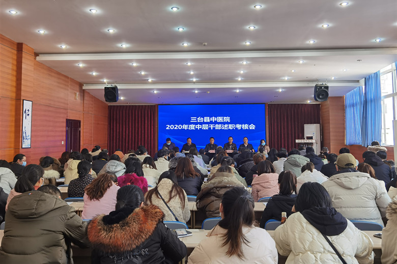 为全面总结经验,客观评价各科管理干部履职能力,再谱2021年医院发展新篇!1月27日,三台县中医院召开2020年度中层干部述职考核会,院班子成员、中层干部、各科室代表及职能科室全体人员参加会议。会议由副院长邓光明主持。