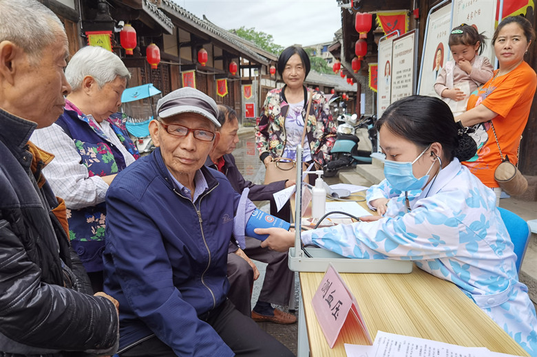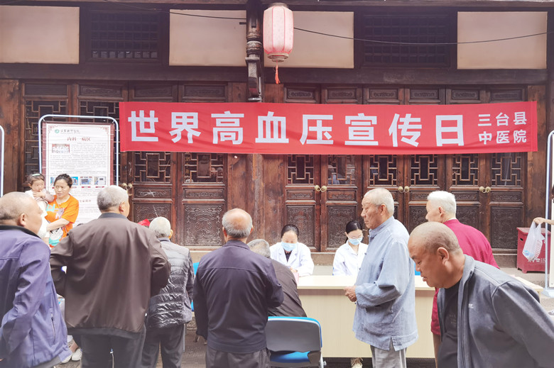 5月17日是世界高血压日,当天上午,三台县中医院在潼川古城萧公馆开展义诊活动。