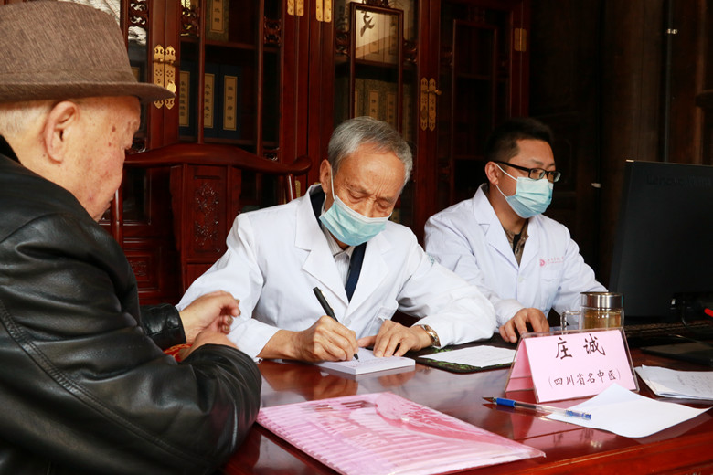 庄诚教授是心脏病、皮肤病、不孕不育等方面的中医专家,得知他的到来,三台许多受疾病困扰的群众都想让他诊治。虽然队伍很长,但庄诚教授依然耐心细致地为每一位患者问诊、把脉、开方。