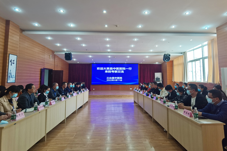 3月11日,大英县中医医院一行20人来我院考察学习,就医院管理、等级创建和重点专科建设等工作进行交流。党委书记谭建军、院领导班子成员及各相关科室负责人陪同。