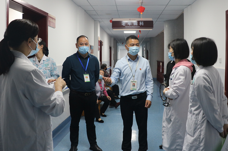 随后,院长卢文华前往老年病科及煎药房,对病房环境及设施、医疗设备、人才梯队等基本情况进行了详细了解,并现场办公,对存在的问题提出整改意见和要求。
