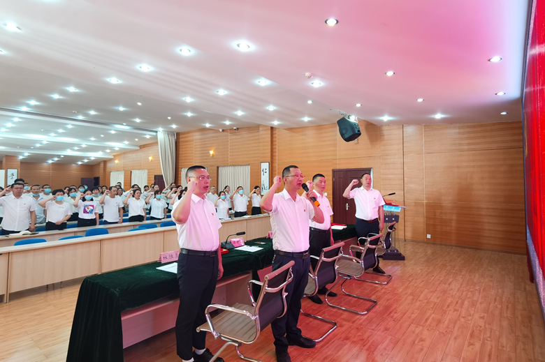 大会在庄严的国歌声中拉开了序幕。在党委书记谭建军的领誓下,全体与会党员重温了入党誓词,铿锵有力、饱含热忱的宣誓声笼罩在整个会议室的上方,再次坚定了共产党员的初心和使命。