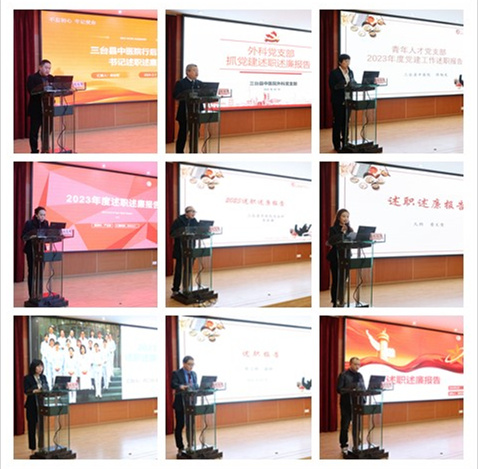 2月1日下午,三台县中医院2023年党支部书记抓基层党建述职评议暨中层干部述职述廉会在行政楼四楼会议室召开。院领导班子,党支部书记、委员,全体中层干部及职能科室人员参加会议。会议由副院长邓光明主持。