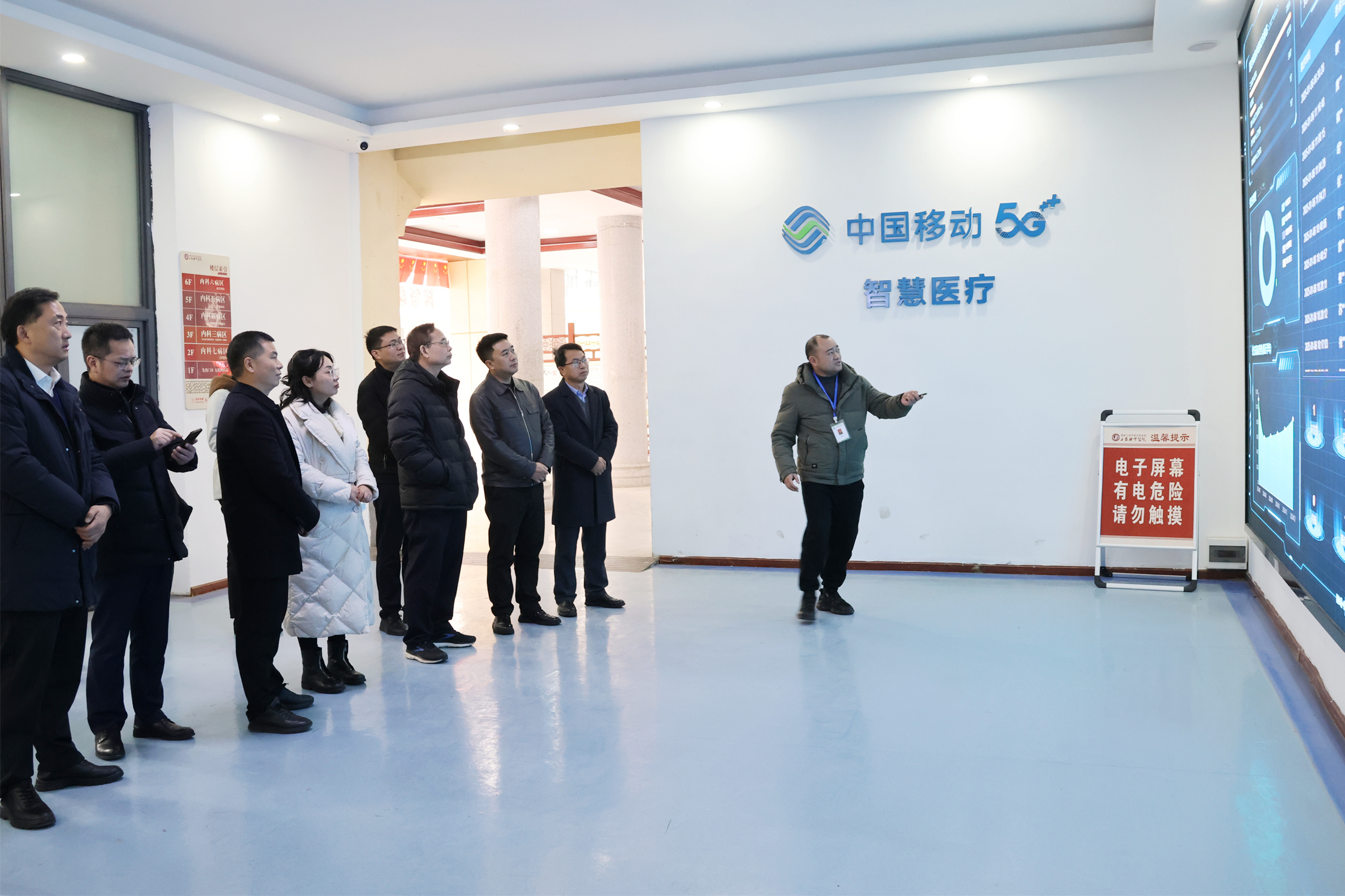 1月6日,北京大学重庆大数据研究院周晓华教授一行专家团队莅临我院调研指导,绵阳市卫生健康委员会党组成员、副主任兰梓仁,中医药科科长赵小嘉,三台县卫生健康局党组书记、局长黄伦,副局长李静凡,三台县中医院党委书记应军、院长卢文华、副院长胡金良及相关科室人员陪同。