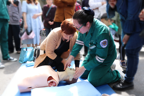 活动现场,医护人员为群众量血压、测血糖,仔细地为前来咨询的市民答疑解惑,普及常见病、慢性病防治知识,进行初步检查。急诊科医务人员进行了徒手心肺复苏的现场演示和操作指导,专业的操作示范结合通俗易懂的讲解,帮助群众能够掌握基本的救护技能。同时,也进行了中医药知识有奖互动问答。