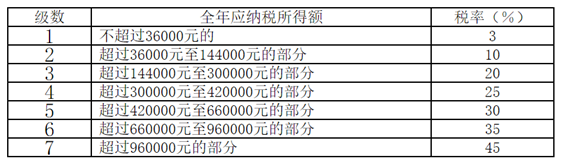 注2:非居民个人取得工资、薪金所得,劳务报酬所得,稿酬所得和特许权使用费所得,依照本表按月换算后计算应纳税额。)