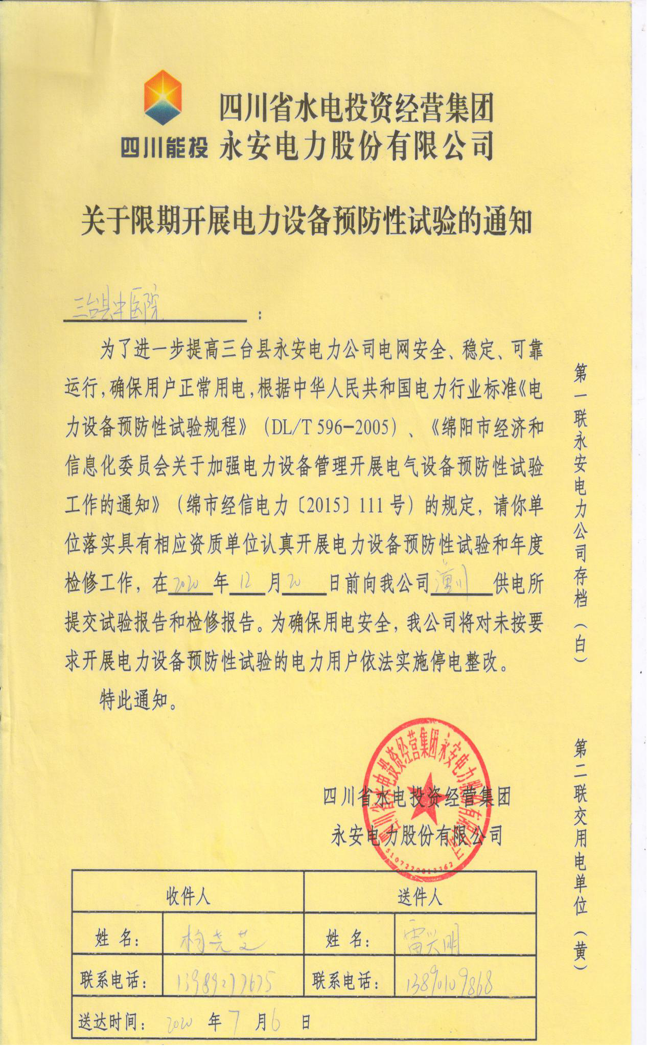 根据绵市经信电力[2015]111号文件的要求,三台县中医院拟委托第三方公司对现有电气设施进行预防性实验和年度检测,现将有关事项公示如下: