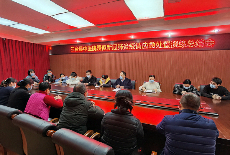 2月3日,三台县中医院组织开展新冠肺炎疫情防控应急处置演练。医院疫情防控救治领导小组成员及相关工作人员共30余人参加。演练由副院长杨凤全任总指挥。