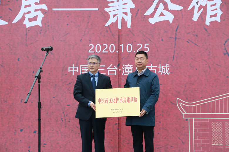 绵阳市中医医疗集团名誉副理事长、绵阳市中医院党委书记任清良为“中医药文化传承共建基地”授牌,三台县卫健局党委书记、局长赵锦涛接牌。