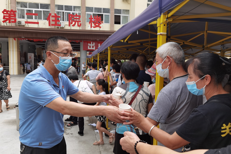 一杯“凉茶”暖人心--三台县中医院为接种市民送清凉