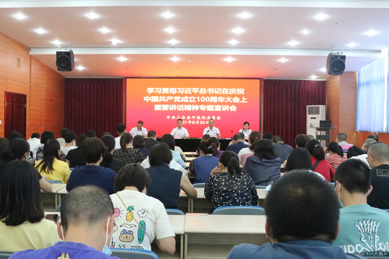 8月26日,三台县中医院召开学习贯彻习近平总书记在庆祝中国共产党成立100周年大会上重要讲话精神专题宣讲会。院班子成员、全体中层干部、职能科室人员参加会议。