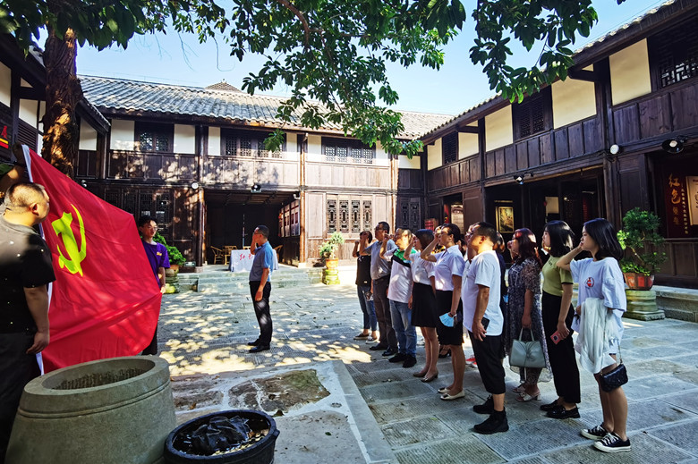 现场参观结束后,全体党员在鲜红的党旗面前举起右拳,重温入党誓词。