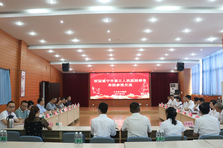 遂宁市第三人民医院院长康东对医院基本情况作出介绍。随后,双方就医院管理、中医药特色优势建设等相关问题进行了深入探讨。
